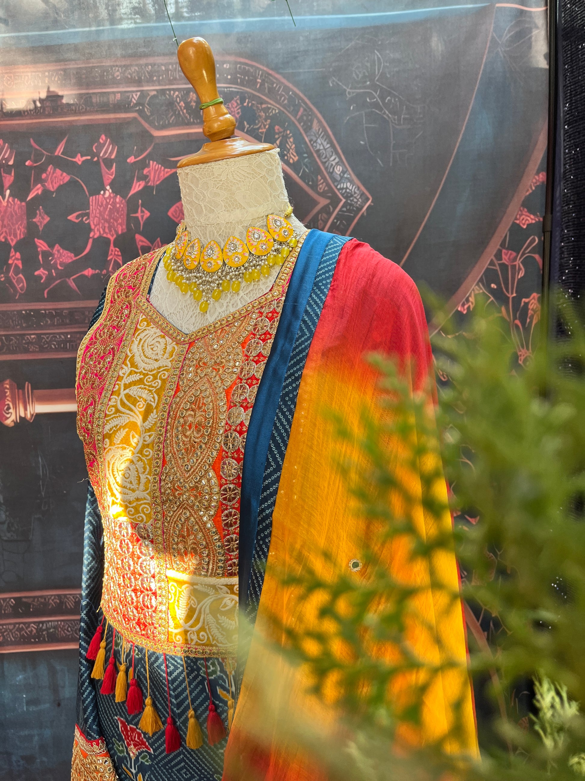 Work: Mirror Embroidery, Gulab Bootas, Digital Bandhani Print