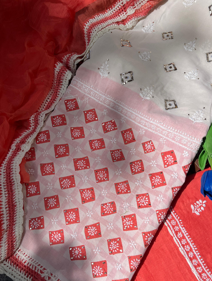 Cotton Voile Chikankari Appliqué Ensemble