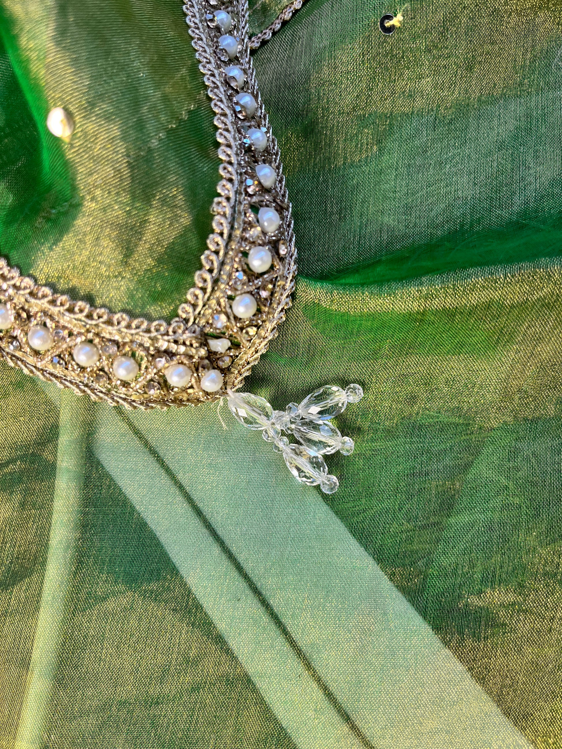 - Work: Handcrafted Zardozi on neckline & sleeves
